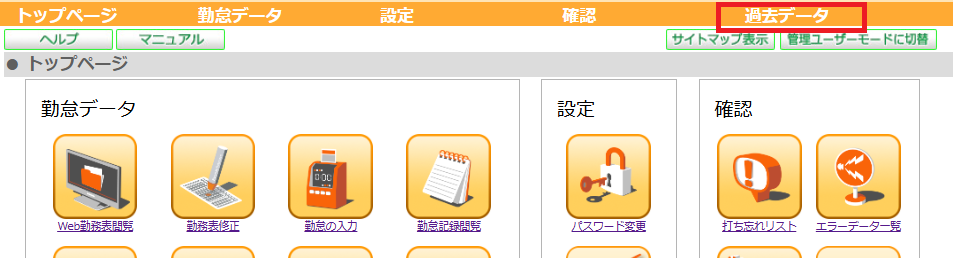 ①オレンジ色のメニューバーから「過去データ」にカーソルを合わせる