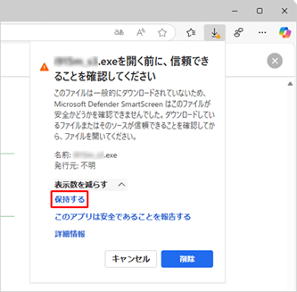 ※「保持する」が画面上に見当たらない場合は下図のように「削除」ボタン右側の「∨」をクリックしてください。