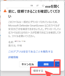 1. 表示されているメッセージ内の「詳細情報」をクリックします。